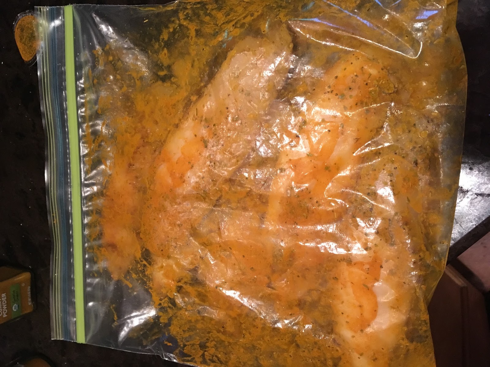I used frozen tilapia. Added the seasonings to a ziplock before adding the fish.